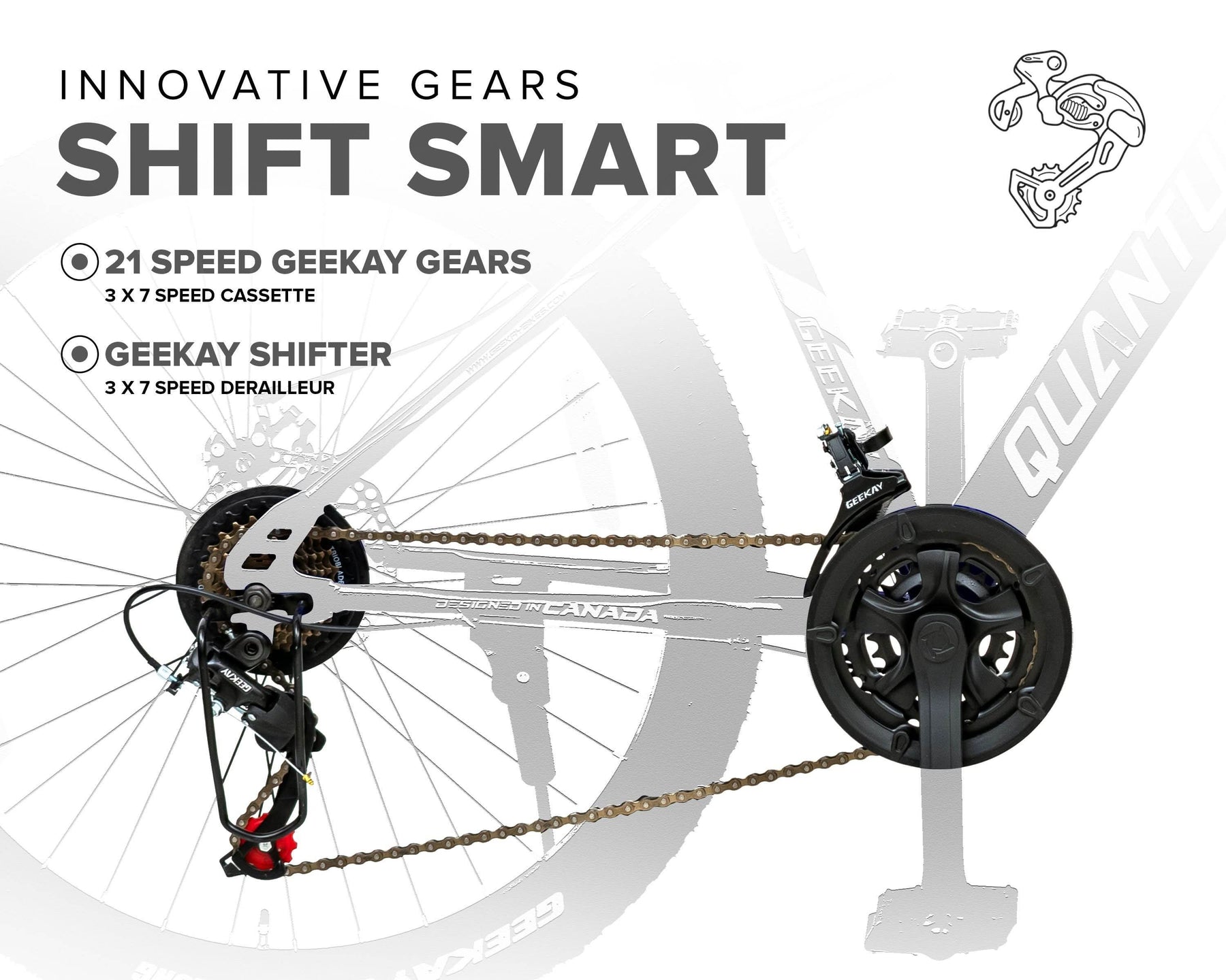 It's time to upgrade your cycling experience with Quantum, the 21-gear cycling machine. Our new model brings superior performance and comfort with its state-of-the-art design and premium components. Whether you're looking for a leisurely ride or an adrenaline-pumping adventure, Quantum has you covered - just sit back, pedal, and enjoy the ride!