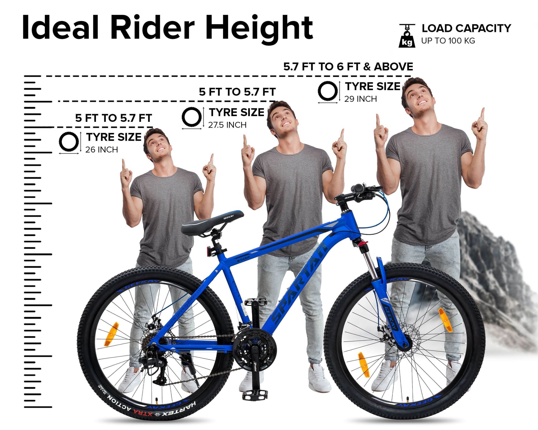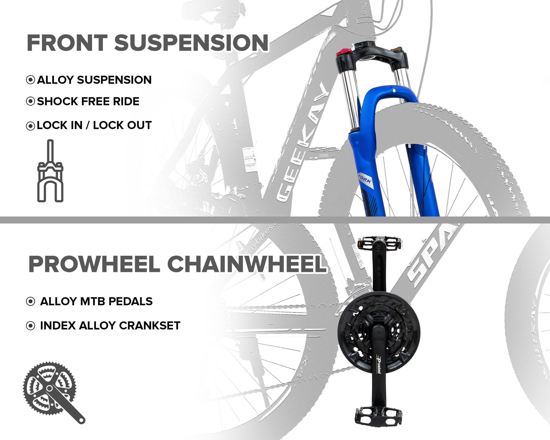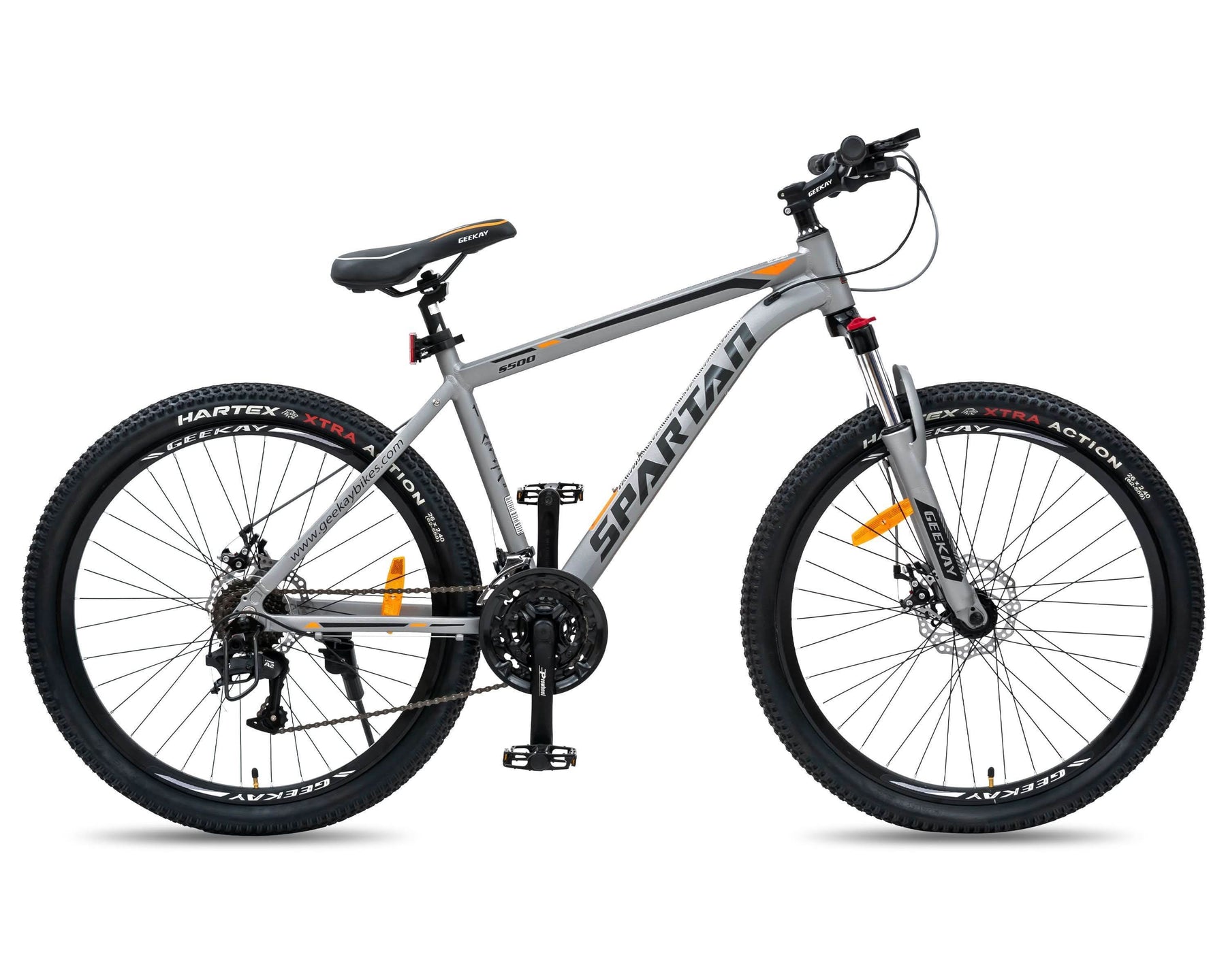 Geekay Spartan is a light and durable 21-speed geared mountain bike perfect for all your adventure needs. With a lightweight alloy frame and smooth wheels, it will take you anywhere with ease. This bike is agile, comfortable, and perfect for any ride.