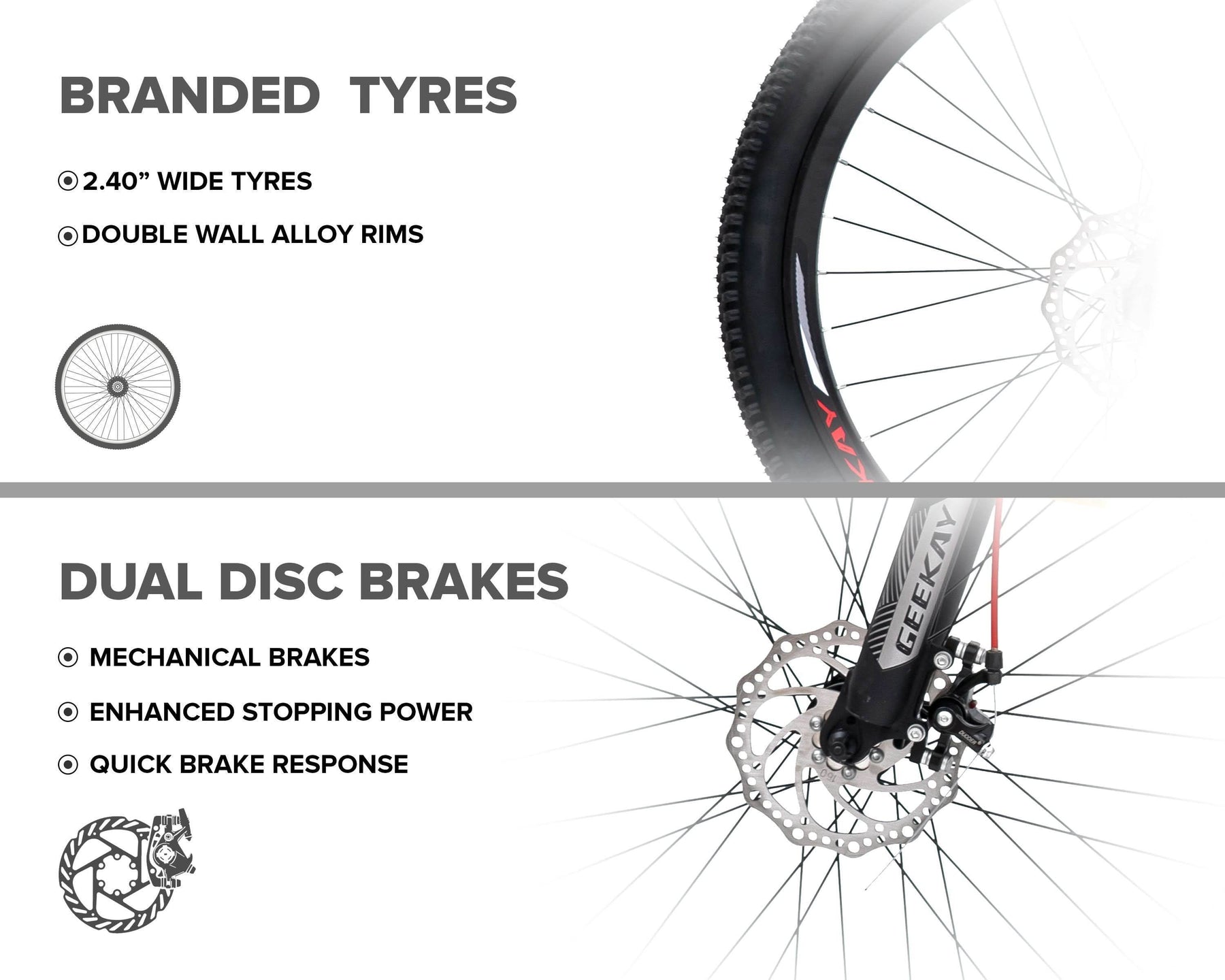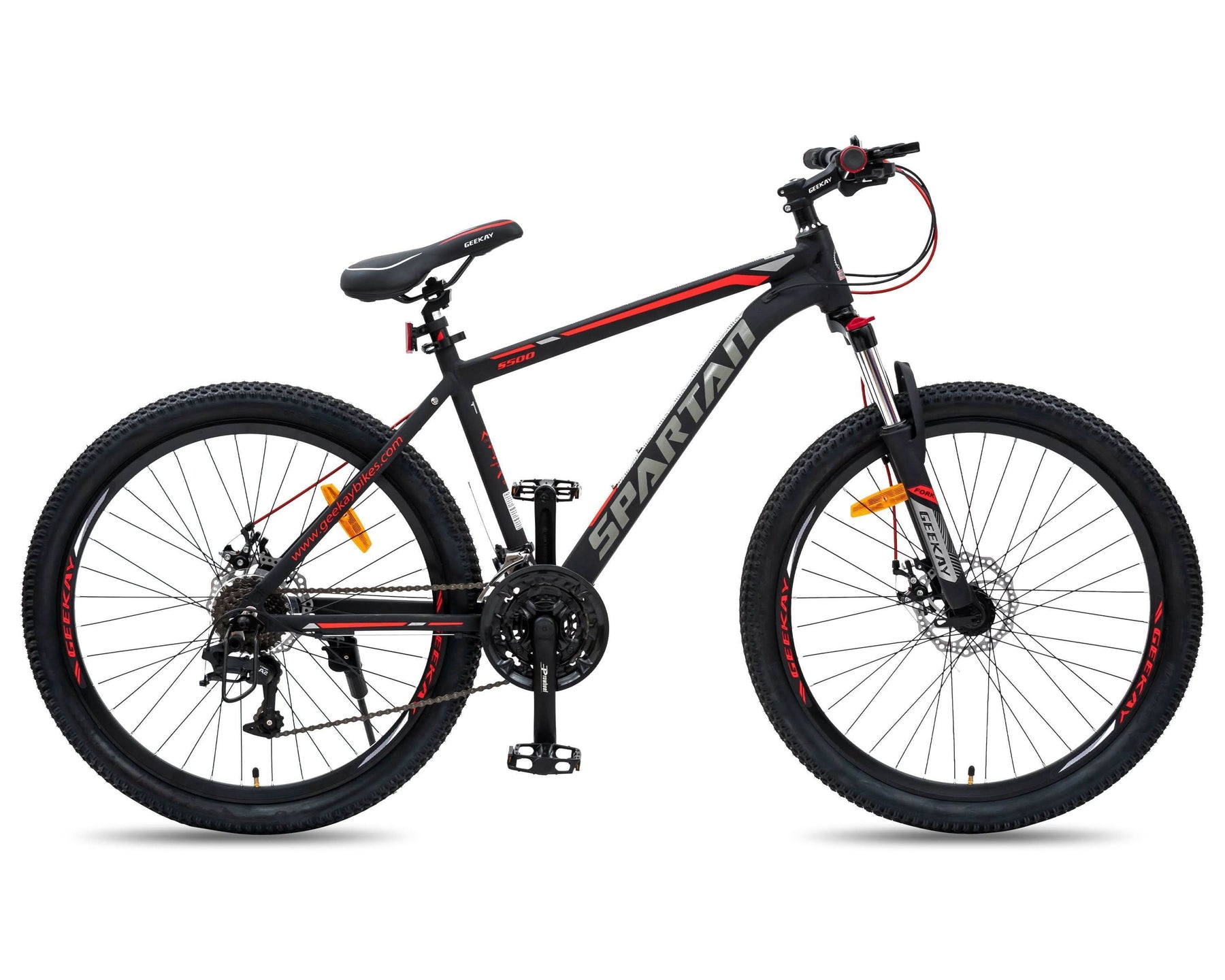 Geekay Spartan is a light and durable 21-speed geared mountain bike perfect for all your adventure needs. With a lightweight alloy frame and smooth wheels, it will take you anywhere with ease. This bike is agile, comfortable, and perfect for any ride.