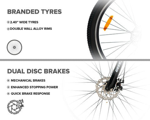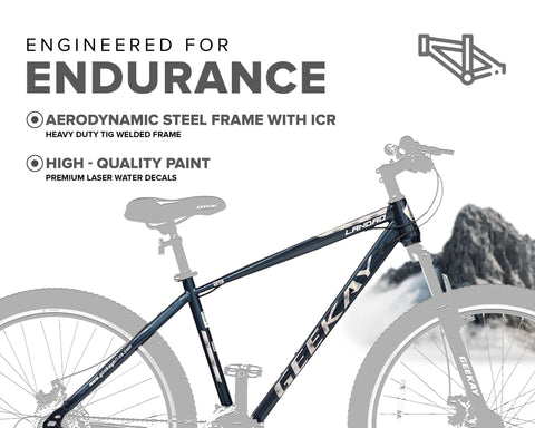 Geekay Landao is a high-performance mountain bike equipped with ultra fast 27 speed gears. This bike is designed for riders who demand the best in performance and versatility. The hubs boasts of all alloy bearing hubs with rear 9 speed cassette. You can easily tackle challenging terrain, from steep climbs to fast descents, with confidence and control. The microshift gear system allows you to smoothly shift between gears, giving you the power you need to conquer any obstacle.