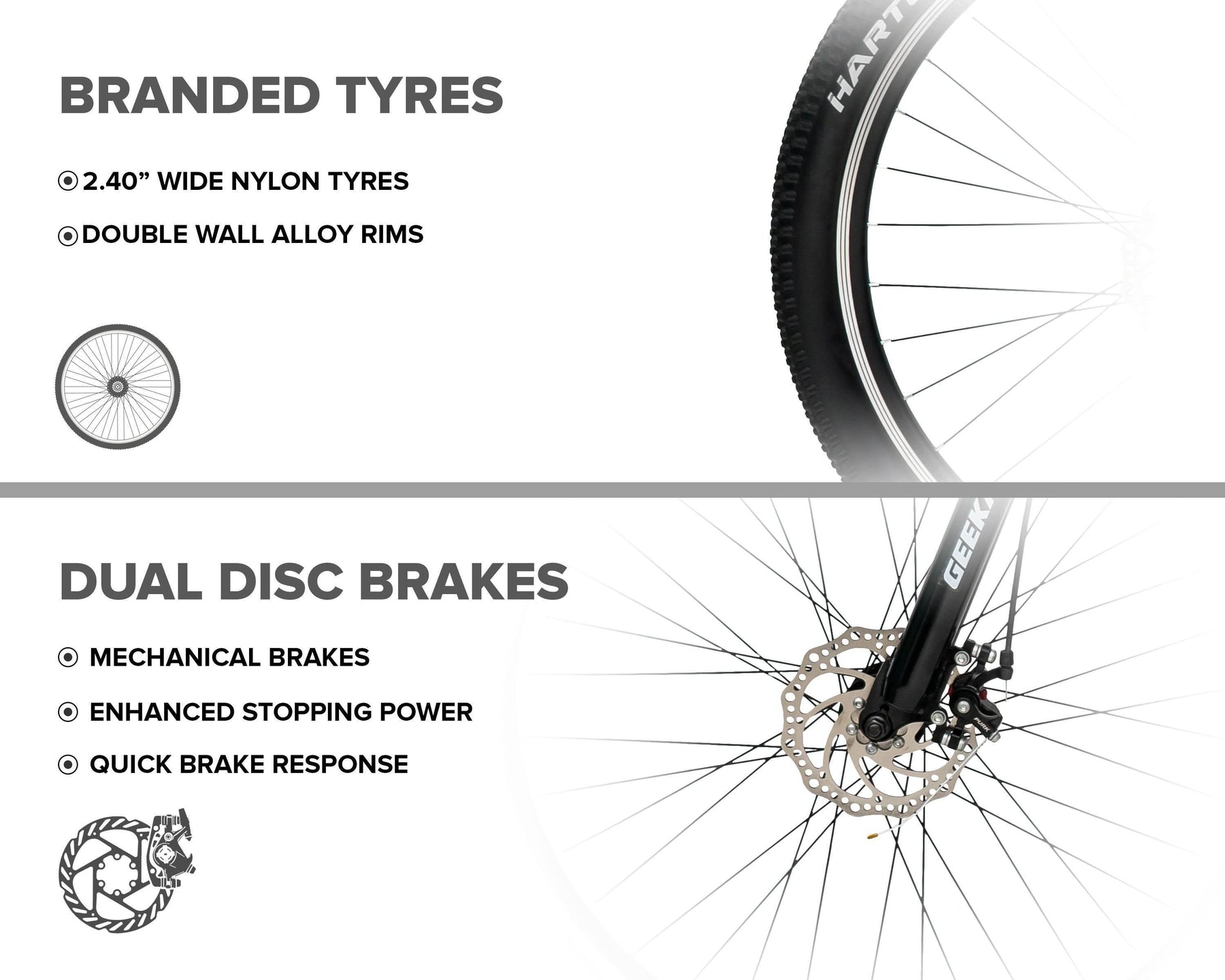 Built for riders seeking an ultra-low-maintenance, long-lasting bike, the Geekay Laux is the perfect bike for commuting, touring or any ride. Tough steel frame and mechanical disc brakes are meant to last through thick and thin. When it comes to gearing, our Dual Disc Brakes offer coasting capabilities so that you can glide on down with ease!