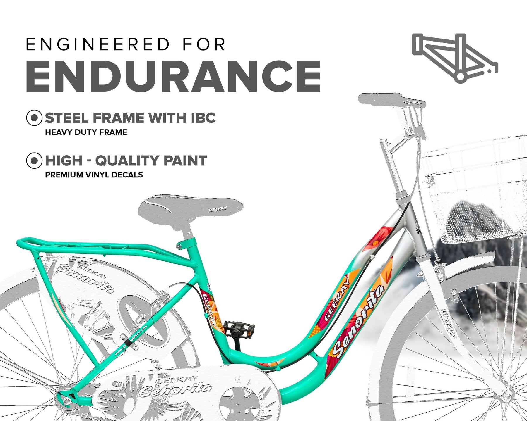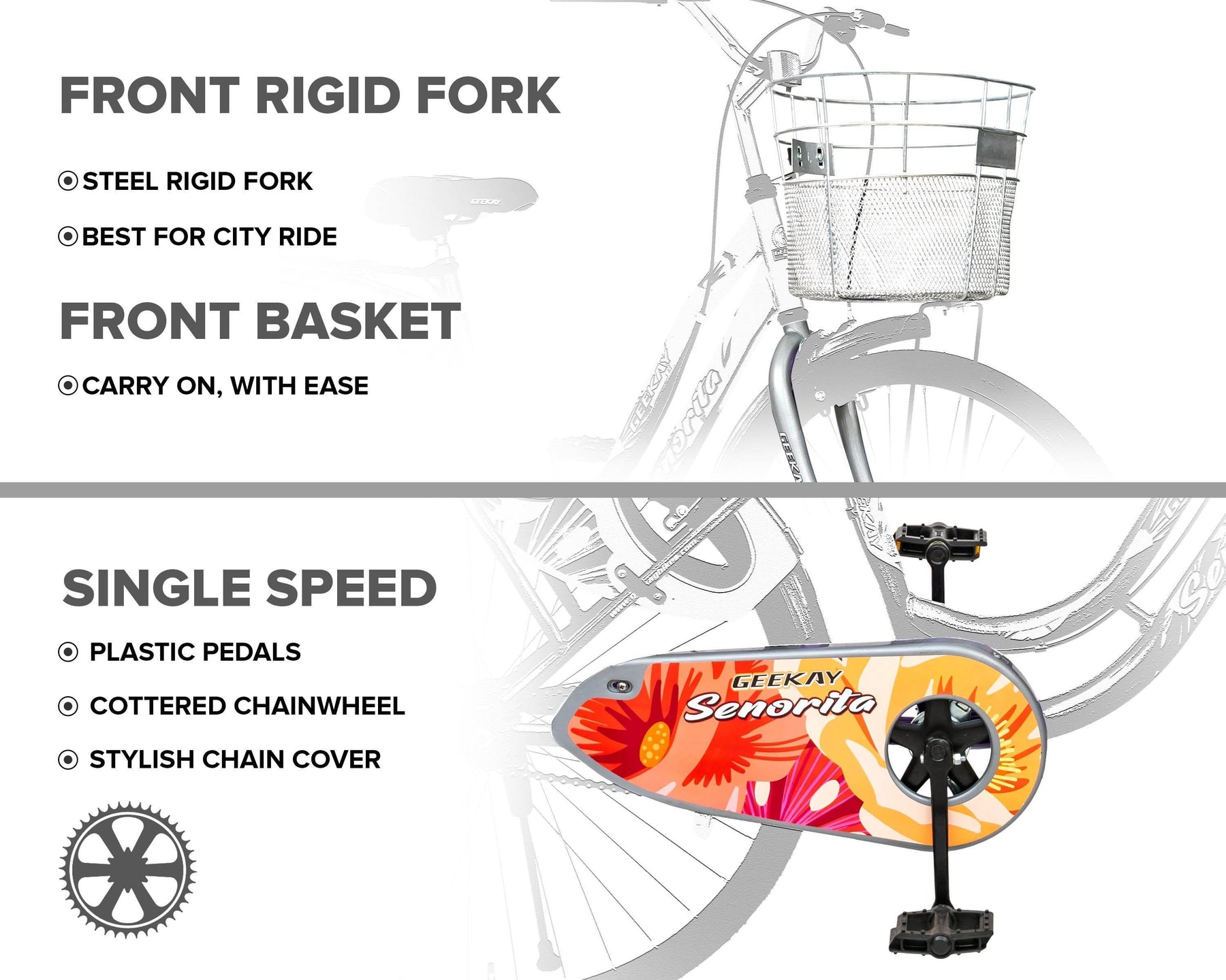 Jumpstart your cycling journey with Senorita - the perfect ladies' cycle for a fun and comfortable ride. It is designed to meet your every need, no matter where you're headed. So what are you waiting for? Get your hands on Senorita now and make your next journey one to remember.