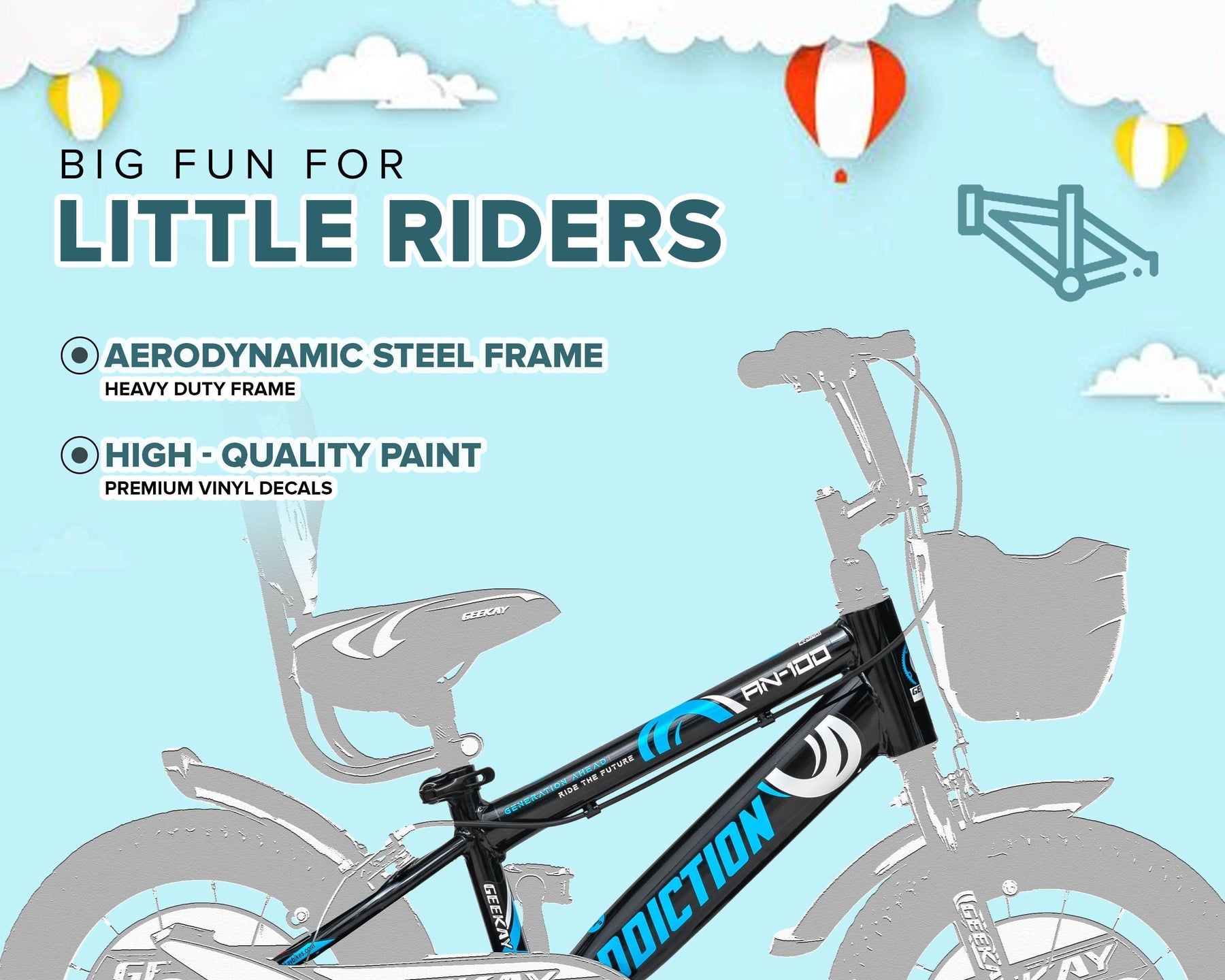 A perfect blend of style, safety, and adventure for your young riders. Designed with precision and care, Addiction boasts a sturdy frame & reliable brakes ensuring a secure and exhilarating ride every time. Let your child's imagination roam free as they pedal their way to fun and discovery. Whether cruising around the neighborhood or tackling new terrains, the Addiction is the ultimate companion for young adventurers.