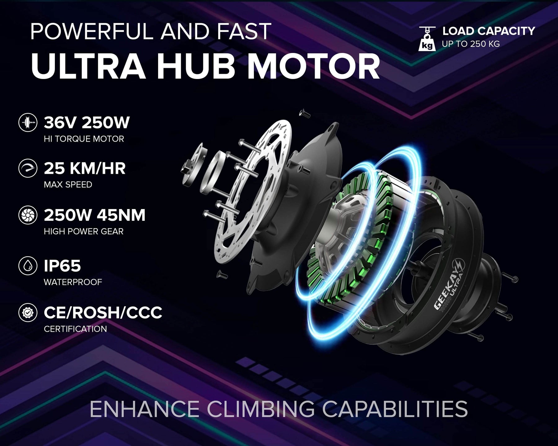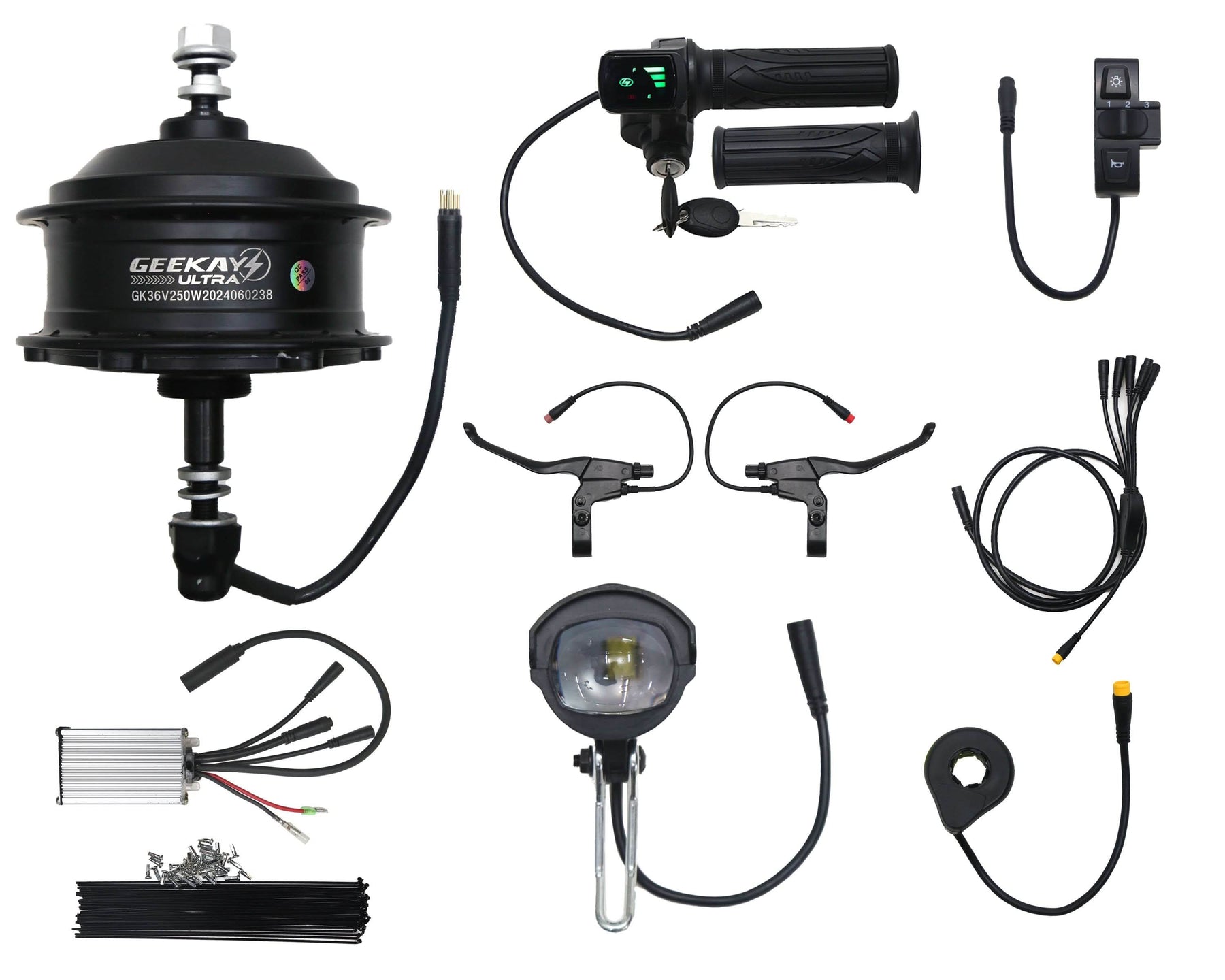 Geekay Bikes provides a comprehensive 36v hub motor kit for e-bike enthusiasts. This kit makes it easy to convert your bike into an electric one. Take a look at the impressive features of this 250W BLDC motor kit.