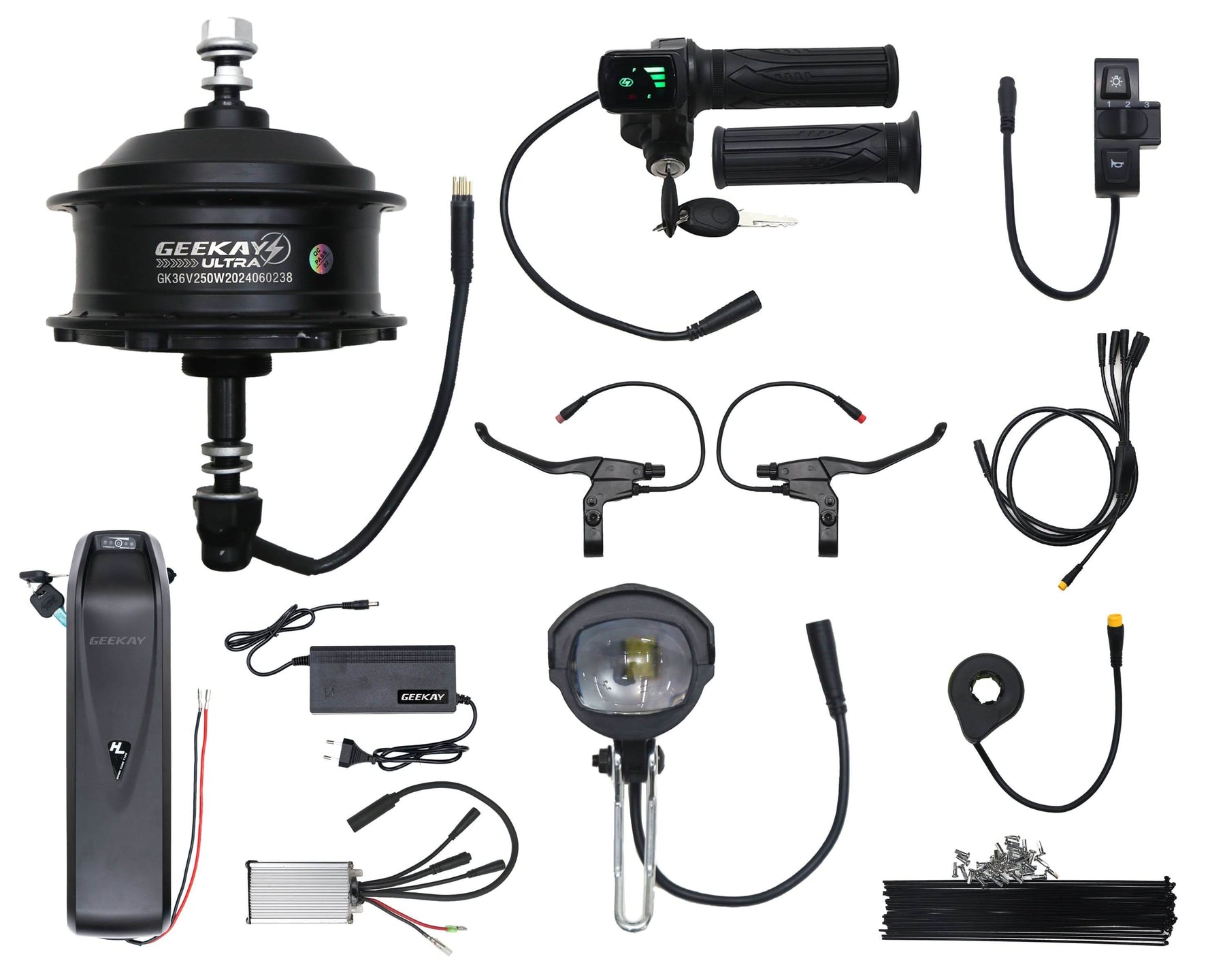 Geekay Bikes also offers an option for a 36v lithium-ion battery charger with the 36v hub motor kit, which ensures fast and safe charging so your cycling adventures can continue.
