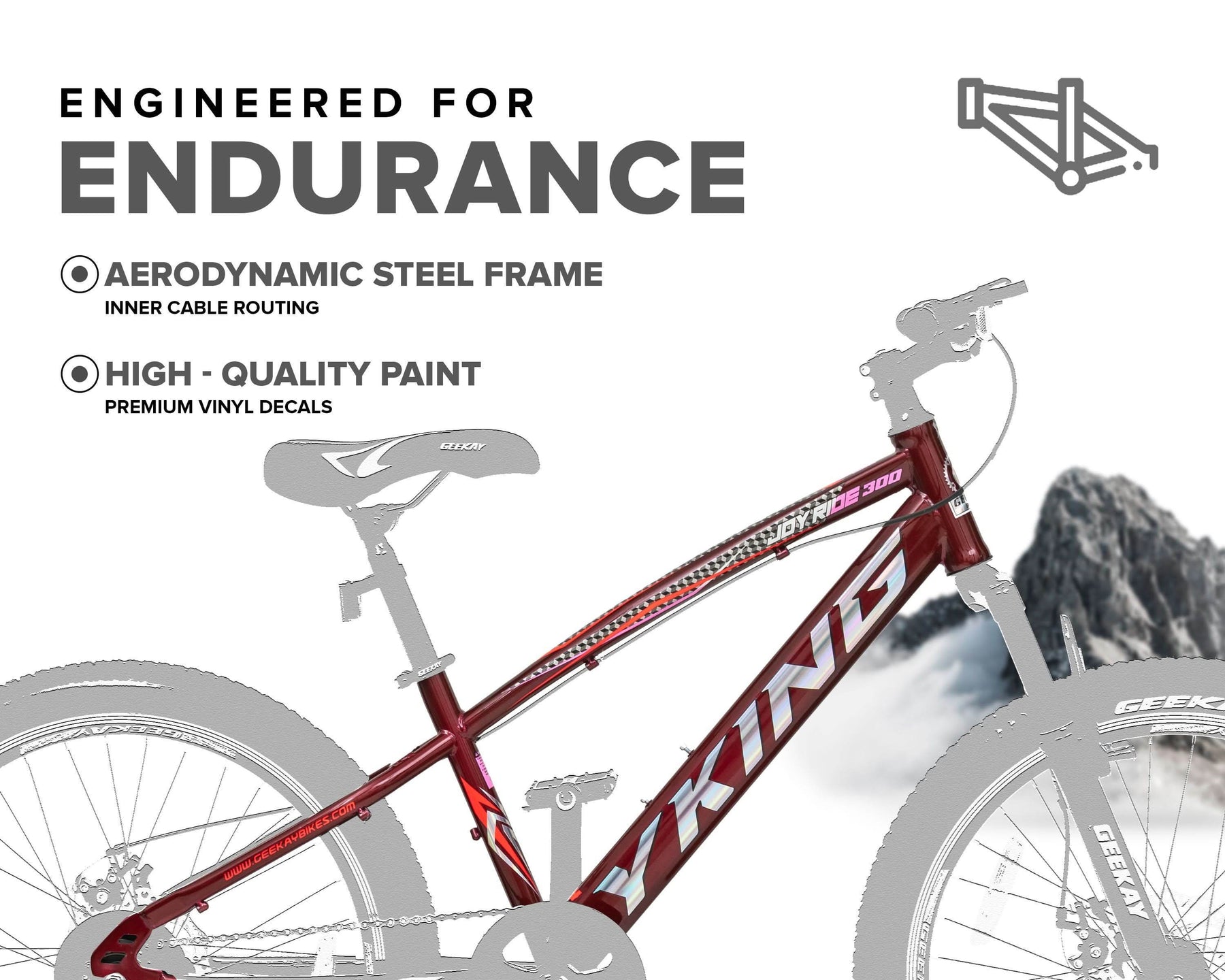 Crafted for Indian riders, the Geekay Y-King is made with careful consideration of what the rider needs. It’s the most sophisticated, yet cost-effective bike. This cycle comes in 21-speed & single-speed options with a suspension fork. It is a perfect blend of conquering any terrain while offering you a dynamic riding experience.